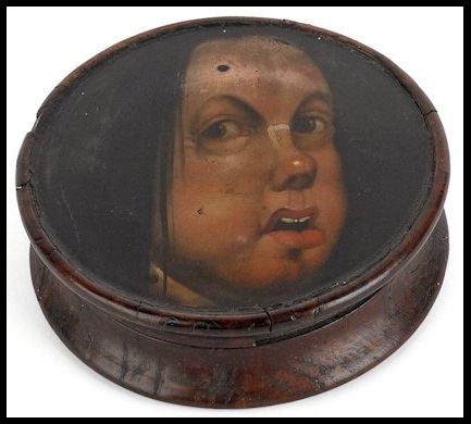 Wood boxes are most closely associated with Scottish and Irish snuff boxes. A wood snuff box is not going be like the inlaid box that you will see at every antique store. Wood boxes from the 17th and early 18th century are very utilitarian. They could have a painted scene. However, any ornamentation and decoration will be limited. Wood snuff boxes are not especially valuable.